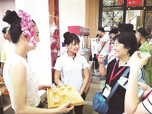 茶博会上,不少茶企在发放茶旅宣传单。安徽天之红茶业公司专门成立了茶旅分公司,可以为消费者提供三宿两天的茶旅内容,包括住茶庄园、采茶、制茶、鉴茶、吃茶、用茶等全面体验茶的健康生活。福建春伦茶业公司也在展位上积极宣传公司的茉莉花之旅。有的茶企还打出了购三千元茶叶免费到厂家进行二日茶游的优惠政策。