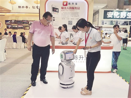 在企业展位上,为了吸引观众前来品茶,各企业想点子,出奇招。川茶集团在现场请来了吉祥物熊猫为大家奉茶;云南陈升号茶业公司展位上的陈升宝机器人,参观者一边喝着老班章,一边听机器人演唱云南特色民族歌曲。有的展位还推出了机器人美女奉茶,引得消费者纷纷驻足观看。
