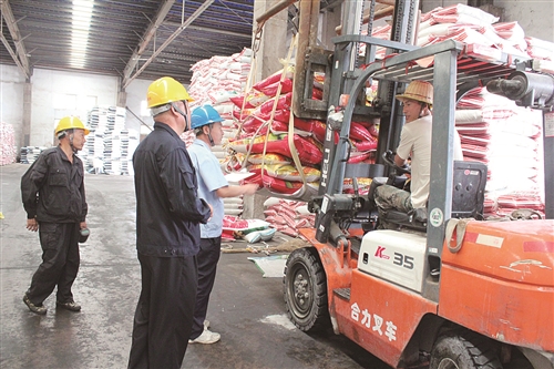 自进入“安全生产月”以来,山东红日化工股份有限公司通过在安全条幅上签字、安全宣誓、现场安全检查、安全应急演练、消防比赛等活动,营造浓厚的安全氛围,进一步强化红线意识,提高全员的安全技能。图为交通安全专项检查现场。
