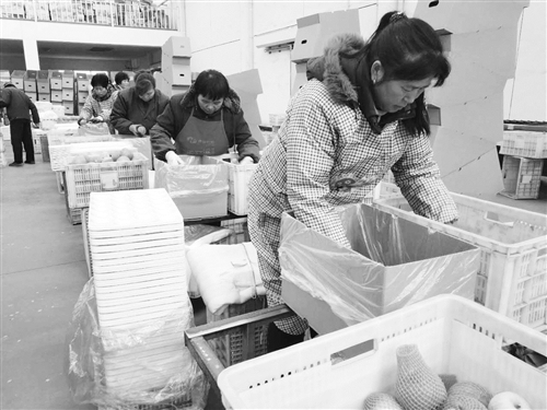 首先,公司充分利用拥有1.6万吨库容气调库的优势,以管理规范化、生产标准化、经营集约化、服务社会化、产品品牌化为目标,加快构建农产品现代流通服务平台。在苹果收购上,公司统一收购标准,在价格、资金结算方面对贫困户提供优惠;在苹果储存上,为贫困户提供免费的运输和装卸服务;在苹果加工上,吸纳周边村的农民到苹果加工车间务工,对重点扶贫村的贫困农民优先雇用。公司年均用工160余人,按日工资男工80元/天、女工70元/天。其中,省定贫困村南郑格村的贫困户有6人,每年工作200天,每人收入1.8万元;在苹果销售上,充分发挥万吨气调库储存品质好、损耗少、省时省工的技术优势,引导农民把气调库作为交易平台,实现客户与农民面对面对接,减少中间环节,解决因流通环节多造成的销售成本过高问题。同时,公司积极开展“农超对接”,将产品打入上海联华、南京家乐福、北京物美等大型超市。