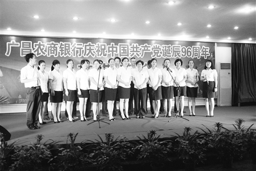 日前,江西广昌农商银行举行了“广昌农商银行纪念中国共产党诞辰96周年”文艺晚会,节目内容紧紧围绕歌颂党、歌颂祖国的主题,涵盖讲党课、讲述红色故事、歌曲、舞蹈、小品、朗诵等文艺表演。