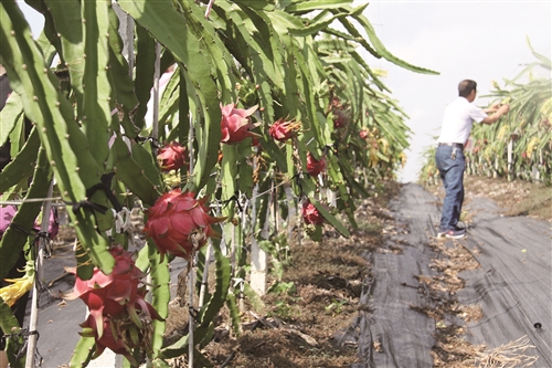 广西金福农业有限公司火龙果标准化基地是广西连片种植面积最大的红心火龙果种植、种苗培育基地之一。公司董事长张学旺介绍,基地从台湾引进最新品种的火龙果种苗进行培育种植,并结合南宁本地气候生态条件,创新栽培技术,持续开展火龙果品种选育,探索出排架式种植火龙果的新方法,解决了火龙果枝条腐烂、果实花斑病等生产技术难题。
