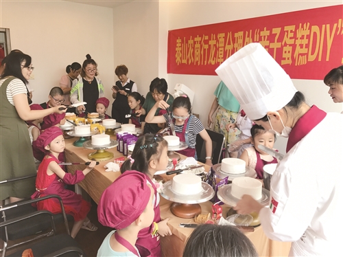 7月8日,山东泰山农商银行以主题银行建设为契机,举办了一场“亲子蛋糕DIY”沙龙活动,邀请周边社区居民及新老客户约15组家庭参加了本次活动。