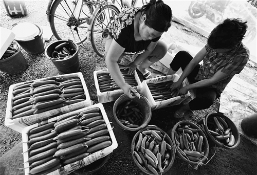 盛夏时节,山东省郯城县栋杰种植农民专业合作社从荷兰引进种植的“水果黄瓜”新鲜上市,平均亩产1.5万公斤,合作社以每公斤7.2元的价格直供山东一家超市。据合作社负责人王杰介绍,这种黄瓜叫“荷兰小黄瓜”,口感脆甜,洗净即可食用,又被称为“水果黄瓜”。 房德华 摄
