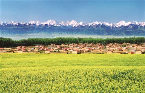 图2为伊犁州昭苏县和谐新村驻花海。