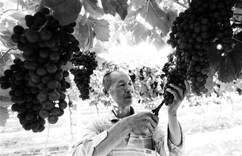 8月4日,位于新疆生产建设兵团第五师八十九团七连标准化葡萄园内,只见葡萄树下挂满串串甜美诱人的葡萄,采摘棚内人头攒动,人们或忙着修剪葡萄,或忙着验级装箱,一串串泛红的葡萄散发着诱人的香甜气息,串串鲜美的葡萄更加映红了一张张果农灿烂的笑脸。近年来,该团通过不断加大产业结构调整力度,扩大葡萄种植面积,推广“厂字型” 栽种模式,调整葡萄品种,葡萄已为该团职工增收致富的“聚宝盆”,标准化葡萄种植成为该团葡萄种植职工的“甜蜜产业”。 任登举 摄