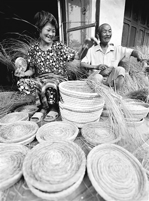 8月16日,农民晾晒收割的琅琊草。初秋时节,山东省临沂市郯城县扶贫基地内种植的1.5万亩琅琊草收割上市,当地工艺品公司、草编合作社按照订单将其晒干、消毒后编制成工艺品出口海内外。周边2000余名建档立卡贫困户通过编织加工草编工艺品走上脱贫致富道路。