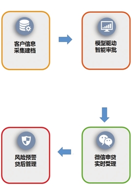 微信审贷实时受理:基于“移动应用+内部系统”的一体化设计,建立覆盖贷前、贷中、贷后的闭环管理流程。提高风险预警和贷后管理能力。