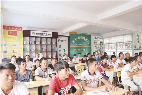 农村金融致富学校+电商服务站。电商服务站是基于电子商务平台、为方便农户网上交易的洽谈平台,将电商服务站嫁接于农村金融致富学校中,使农民充分利用电子商务提供的网络基础设施、支付平台、安全平台、管理平台等共享资源,从而有效地、低成本地开展商业活动,并为农产品联网销售打开渠道,让优质的农产品卖得掉、卖得快、卖得好,真正做到“黔货出山,网货下乡”。
