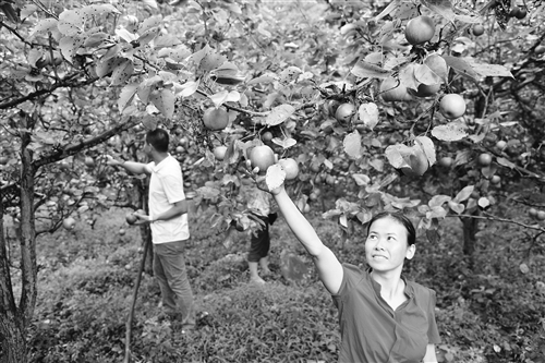 秋收季节,湖南省隆回县横板桥镇树足村梨园一片欢腾。今年该村鹅梨又获丰收,摘梨、买梨,人来人往。树足村属典型山区贫困村,近年来,在湖南省扶贫队的规划下,该村种植鹅梨百余亩,户均年收入达2万元左右,鹅梨产业帮助35户贫困户成功脱贫。罗理力 摄