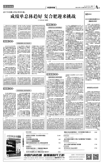 2017年化肥上市公司半年报:成绩单总体趋好 复合肥迎来挑战