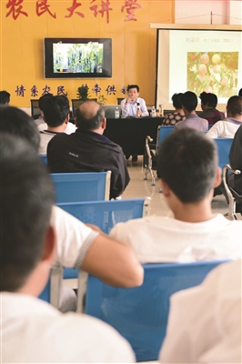9月7日,在山东省枣庄市山亭区水泉供销合作社的农民大讲堂里,果树专家在向农民传授桃树栽培技术。今年下半年以来,水泉镇党委、政府加快“科教兴镇”步伐,利用水泉供销合作社的场地开办起农民大讲堂,邀请种植、养殖、加工等方面的专家逢集开讲,向赶集群众普及农业新技术,并接受现场咨询等,受到乡亲们普遍欢迎。刘明祥 摄