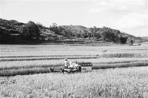金秋时节,重庆市梁平区首个有机水稻种植基地洋溢着丰收的喜悦,收割机在一望无垠的稻田中穿梭作业,田间呈现出收割、脱粒、卸仓、装车、运输的繁忙景象。今年,梁平区有机水稻种植基地种植面积600余亩,平均亩产量达600多斤,每亩纯收入在800元左右。同时,该基地聘请20名贫困村民从事稻田管理,共发放了30余万元劳务收入,实现了脱贫增收。