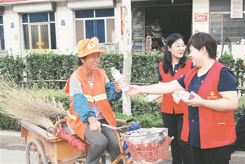 市农信联社党委为切实改进作风,推动广大干部员工深入一线,密切与群众的联系,坚定回归“三农”,服务民生,连续下发三个通知和实施方案,号召全行开展“红马甲为民服务”活动,就是广大干部员工在开展各类活动时,参与人员统一身着标志性红马甲,亮明农商银行员工身份,向社会宣誓优质服务,接受社会监督,促进转变作风。身着“红马甲”为民服务主题实践活动的范围是业务营销、精准扶贫、社会公益活动、进社区、下乡村、访客户等为民服务活动等场合。市联社统一制定“红马甲”标识,背面印制“行名+行徽”,红底黄字,分为夏装和冬装。各农商行按照统一标识要求,组织开展“红马甲为民服务”活动,打造全市农商行统一、整齐、规范的视觉形象。