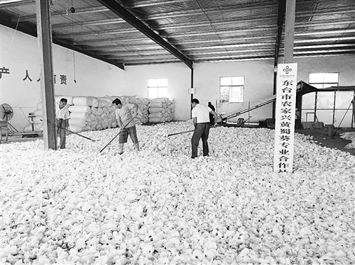 大汗淋漓中,丁旭东不时出来看一下收购情况。他告诉记者,最近正是黄蜀葵花的采摘高峰,他们经常加班作业,9月13日甚至连夜烘干黄蜀葵花到次日凌晨4点。看着为农综合服务社门口等着卖花的熙熙攘攘的长队,在供销合作社工作了20多年的丁旭东不禁感慨道:“真是计划经济时代供销合作社才有的场面呐!”