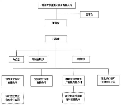 2017年初,湖北省供销总社以宜红茶业股份有限公司和湖北省赵李桥茶厂有限责任公司为主体,整合了其他所属的茶业企业,并向湖北省人民政府申请,经批准成立了湖北省茶业集团股份有限公司。湖北省茶业集团是集茶叶种植、生产、加工、研发、内销、出口、文化推广于一体,全产业链经营的综合专业集团。集团注册资金1.5亿元,总资产逾6亿元,旗下拥有两家省级农业产业化龙头企业——湖北省赵李桥茶厂有限责任公司和宜红茶业股份有限公司,并拥有三家区域性专业茶叶公司——湖北汉口茶厂有限责任公司、宣恩宜红贡茶有限公司和秭归宜红茶业有限责任公司。集团在茶叶主产区域恩施、咸宁、宜昌等地建立生产基地占地面积共220亩,厂房7万多平方米,拥有核心茶园基地1.5万多亩,辐射周边茶园11万多亩,拥有10余条茶叶生产线,百余台套生产设备,年产能1.5万余吨。拥有中国驰名商标“川”字号,及“宜红”“牌坊”“火车头”等湖北省老字号品牌。集团主要经营湖北“青砖茶”、湖北“宜红”红茶和湖北名优绿茶系列产品,其中,所经营的荣获“中华老字号”和“中国驰名商标”的“川”字牌青砖茶多年来一直保持青砖茶产销量第一,所经营的中国三大出口红茶之一的“宜红”红茶和优质绿茶以其品质优良,畅销国内外市场。