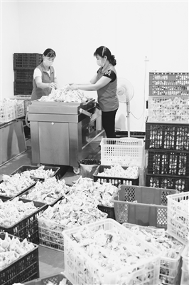 9月20日,河南省光山县文殊乡杜槐村金合欢合作社社员正在整理装箱麻鸭蛋。该合作社去年春投资820万元创建了金合欢麻鸭养殖基地,养殖麻鸭5万余只、办起了麻鸭咸蛋厂,年生产真空麻鸭蛋900多万枚,产品远销广东、福建等18个省,年收入262万元。可解决210多村民就业,人均年增2.6万元,还带动当地54户贫困户、184人从事麻鸭养殖业、真空麻鸭蛋生产。