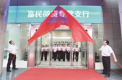 9月6日上午,江苏扬中农商银行富民微贷专营支行开业,扬中农商银行党委书记、董事长陈幼元,党委副书记、行长严炜镔共同为富民微贷支行揭牌。