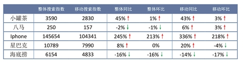 茶品牌搜索度较低