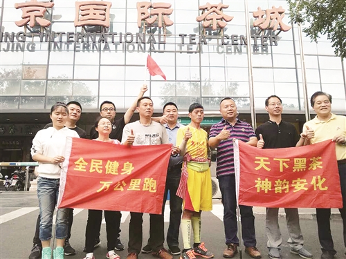 9月23日,跑神邓良华历经63天,完成3699公里的路程,跑到北京马连道宣传“全民健身”和“安化黑茶”。白沙溪、湘益、中茶、久扬、连心岭等安化黑茶北京联盟企业及北京各界安化籍人士齐聚一堂,为跑神邓良华接风洗尘。