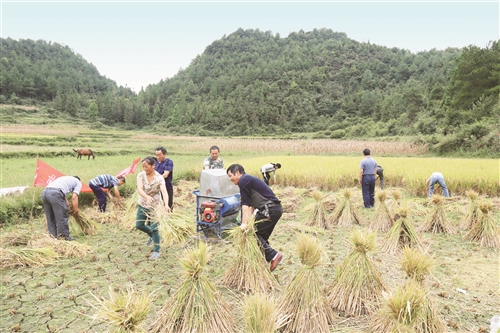 近日,贵州省龙里县供销合作社全体党员、驻村干部及单位职工来到挂帮的湾滩河镇盘脚村,开展“秋收助农”主题党日活动,帮助困难群众秋收。