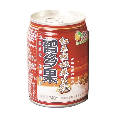 鹤乡果核桃乳生产厂区环境优良,生产工艺成熟,产品属纯天然植物蛋白型饮料,采用国内先进配方,选用威宁本地优质核桃,配以自产纯净水,经现代加工工艺精制而成。生产工艺中不添加香精、色素、防腐剂,保持了核桃的原始香味口感和天然绿色饮品的特征;生产出的核桃乳植物蛋白饮品,口感细腻,内含人体所需的19种氨基酸和大量的亚油酸、亚麻酸等不饱和脂肪酸,是降低胆固醇、防止动脉硬化,抗衰老、益智、秀发的天然绿色健康饮品,具有较高的营养价值。该产品已于2012年10月取得国家质检总局颁发的食品生产许可证(QS证)。
