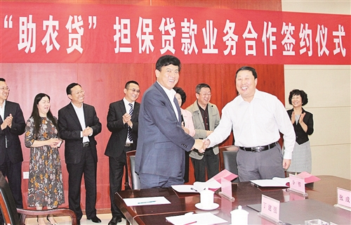 图为包头农商银行与内蒙古财信农业担保公司联合推出“助农贷”。