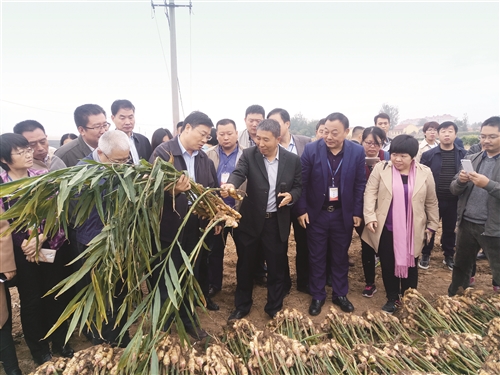 近年来,山东省安丘市供销合作社按照“政府主导、部门联动、企业化运作、社会化服务”的原则,建设了土壤熏蒸修复社会化服务体系,大力推广氯化苦土壤熏蒸消毒新技术,实行专业化“一条龙”服务,在有效防控生姜姜瘟病等土传病害的同时,增加了农民收入。年使用氯化苦、棉隆等土壤消毒剂专业化服务面积达10万余亩,基本覆盖全市主要农产区。10月26日,农业部在安丘市举办甲基溴替代履约与土壤消毒技术现场交流会,农业部、环保部、中国农科院、山东省农业厅、潍坊市供销合作社等单位代表,以及相关科研机构、企业和社会化服务组织代表参加了会议。图为现场交流场景。