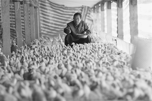 图为11月14日,合作社社员正在喂养樱桃肉鸭。