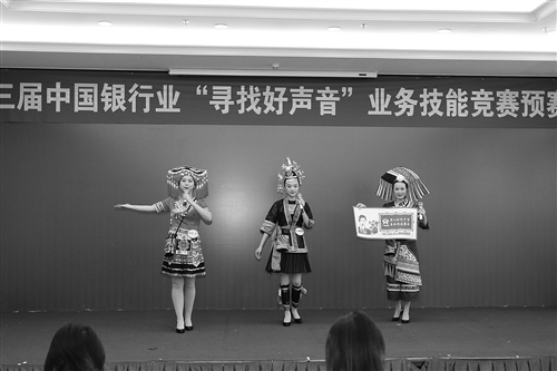 在风采展示环节中,广西农信社三位参赛选手身穿壮、侗少数民族服装,用“三句半”生动形象地讲述发展进程和取得的优异成绩以及客服中心多语种、有针对性的特色客户服务,通过展示剪纸传统工艺,诠释了客服中心“用心聆听声音,真诚传递服务”的服务宗旨。苏庆凤 摄