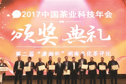 本次年会还举办了茶学毕业生人才信息交流会,创新科技成果交流会,以及第十二届“中茶杯”全国茶叶评比获奖茶样展示,搭建综合性产学研用交流服务平台。2018届毕业生人才信息交流会共收集了全国21所高等院校699位茶学应届毕业生的信息进行交流发布,对院校推荐的101位优秀毕业生进行了简历和视频相结合的重点展示,为茶学毕业生和茶企间搭建公益性招聘信息平台。创新科技成果交流会共展示了茶叶科技新成果60余项,推介了13家高校科研院所、3家茶叶企业。第十二届“中茶杯”获奖茶品展示共计70余个,潇湘茶品展示共46份。此外,主办方还为“全国技术能手”“帝芙特杯”第五届中国茶叶学会青年科技奖获得者及第十二届“中茶杯”全国名优茶评比获奖者颁奖,为9个“中国名茶之乡”授牌。