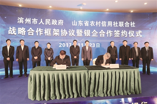 图为滨州市人民政府和山东省农村信用社联合社签约现场。