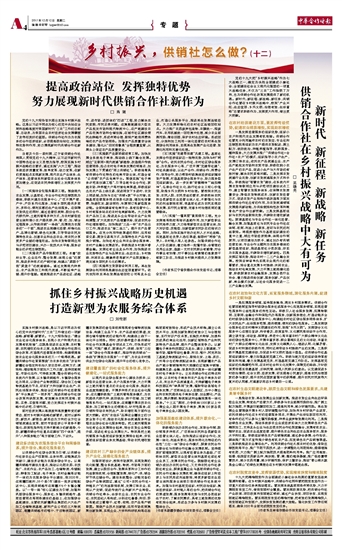 新时代 新征程 新战略 新任务 供销合作社在乡村振兴战略中大有可为