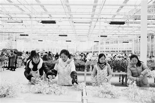 12月18日,贵州省第三届黔西南州旅游发展大会在安龙县举行,嘉宾在安龙金蕙花卉旅游扶贫产业博览园观看花卉。 近年来,安龙县在产业扶贫过程中,积极采取“龙头企业+贫困户+合作社+农户”的模式,统一规划、统一供应品种、统一种植技术、统一技术标准,打造花园式产业园区,以花卉为原材料进行深加工,以精油提炼、永生花、手工花香皂、花茶、花卉纪念等制作提高花卉产品的附加值。目前合作规模500亩,每亩年利润约17000元,合作利润850万元,合作社获利340万元,企业获利510万元,可带动农户为310户,每户可得1万元左右。