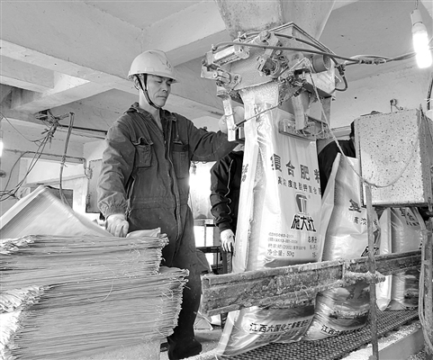 入冬以来,江西六国化工公司认真按照国家化肥淡季商业储备管理办法积极储备化肥、保障供应、稳定市场价格,日前,受到全国供销总社农资市场调研组实地考察后充分肯定。今年,该公司承储国家和江西省化肥淡季商业储备任务8.5万吨,截至12月15日,该公司共生产、本级和网点储备复合肥、磷铵6.22万吨。图为12月15日,硫基肥装置包装现场。