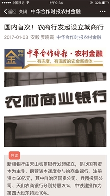2017年1月,新疆银行正式营业。新疆银行由天山农商银行发起成立,是以国有资本为主导、民营资本适度参与的商业银行,注册资本50亿元,其中自治区国资公司、兵团投资公司、天山农商银行分别持股20%,中铁建投作为第四大股东持股10%。这是国内首家由农商行参与发起设立、并最终参股城商行的案例。