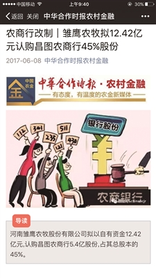 8月22日,现代投资发布公告称,拟出资7.19亿元控股岳阳巴陵农商银行,持股比例为51%。此前,河南雏鹰农牧股份有限公司曾发布公告称,拟以自有资金12.42亿元,认购昌图农商行5.4亿股份,占其总股本的45%。