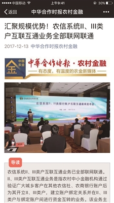 农信系统Ⅱ、Ⅲ类户互联互通业务 全部联网联通