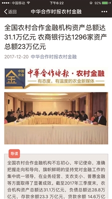 31万亿,是一项可量化的改革成果,使农信社拥有了“宇宙第一大行”的别称,令人欢欣鼓舞。经过十五年的改革历程,即将全部改制为农商银行的农信社,又迎来了改革发展新时期。面对如此巨大的体量、如此广大的从业群体,回顾2003年以来的新一轮农信社改革,人们不禁要问,如何从最大走向强大?如何走好下个十年的发展之路,在全面建成小康社会中发挥重要作用?农信社任重道远。