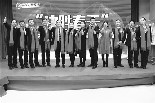 2017年12月27日,安徽岳西农商银行召开了2018旺季营销开门红启动大会。该行董事长徐进军与行长姚刚共同揭开了2018年旺季营销任务目标墙,来自6大战区的支行行长上台与包挂领导签署军令状,一线员工代表、客户经理代表、支行行长代表、包挂支行代表分别上台发表决战宣言。