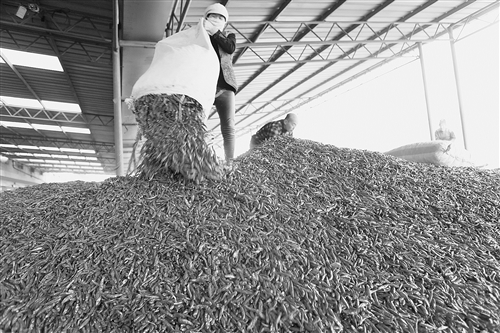 1月1日,椒农们在忙着晾晒、装袋、过秤、装车,准备销售辣椒。山西省襄汾县赵康镇是典型的“辣椒之乡”,2017年椒农们走出分散经营思路,加入合作社,淘汰了品质差、价位低的老品种,引进了辣度高、味道香、抗病虫害的新品种,使得辣椒价格在市场低迷的情况下,仍保持较好的售价。