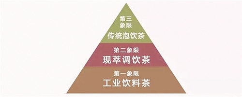 国茶实验室创始人罗军介绍了茶产业“三个象限”分类方法:茶,回归到饮料基本的属性,有三个象限的划分:第一象限是食品饮料茶,大量在前端;第二象限是现萃调饮茶,第一象限大量给第二象限使用;第三象限是传统泡饮茶,可以尽情地发挥其美的特征。