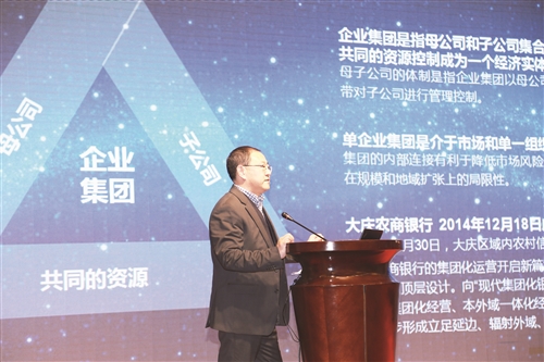 大庆农商银行董事长吕永刚,讲授了“农商银行集团化运营模式的实践与探索”。