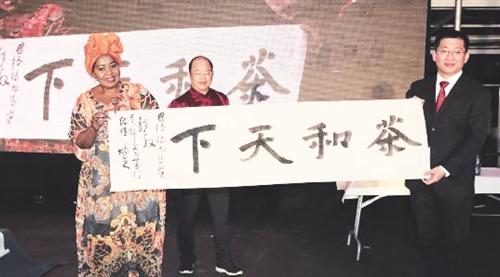 代表团还将书法家现场书写的“茶和天下”书法送给南非第一夫人恩格玛·祖马,以展现茶和天下,是推行一种天下大和之理念。