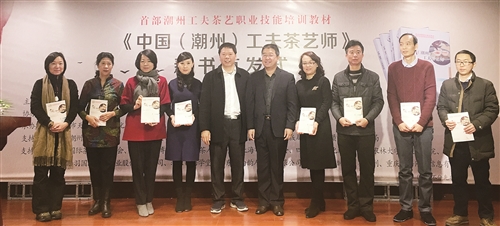 1月28日,《中国(潮州)工夫茶艺师》首发仪式在北京茶叶博物馆举行。该书由人力资源和社会保障部教材办公室、中国老教授协会职业教育研究院组织编写,是我国首部工夫茶艺职业技能培训鉴定教材,将用于示范性专业水平考试,并被列入“中国国际茶文化研究会文库丛书”,填补了我国非遗项目推广教学的全国空白。