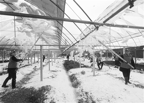 自持续雨雪天气以来,浙江安吉农商银行第一时间组织相关人员,参加一线抗雪抗灾工作,工作人员顶着风雪走入田间地头,帮助有需要的客户抗雪救灾。当得知家庭农场钢棚房岌岌可危时,该行立即组建志愿者服务队,拿着耙子、竹竿等工具前来抢险救灾,排除安全隐患。经过四个多小时的奋战,农场内主场地的积雪清除完毕,为客户挽回了数百万元损失。