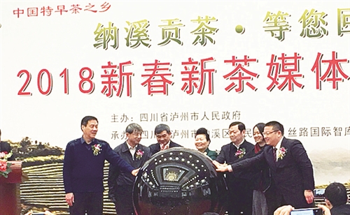 本报讯(记者 冯斯正) 2月11日,“纳溪贡茶·等您回家”2018年新春新茶媒体见面会在人民大会堂新闻发布厅举行, 纳溪贡茶第一次走进了京城。该活动由四川省泸州市人民政府主办,四川省泸州市纳溪区人民政府、丝路国际智库交流中心承办。