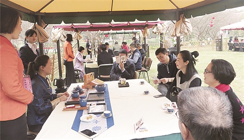 在梅园区内,8张茶桌面对面展开。天福集团董事局主席李瑞河与漳浦县人大常委会主任陈少华,以及来自北京、上海、武汉、汕头等地的客人品茗赏梅,欢庆犬年新春。每个茶桌泡的茶叶由泡茶师精心挑选,各不相同。在冲泡天福初心大红袍时,泡茶师介绍说:“这款茶是我们李瑞河主席匠心打造倾情奉献的精品。他始终不忘初心,坚持专注做茶,深入茶叶灵魂,还原茶叶本质。您品尝的不只是一杯茶,更是世界茶王对茶的执著!”暗香盈袖,佳茗醉人。