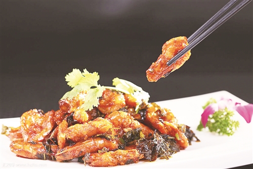 与传统的避风堂做法略有不同,了却了原配蒜茸与面包糠的争风吃醋,增添了一抹清风般的茶香,将不温不火的气息贯穿始末。
