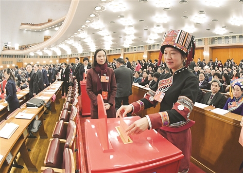 3月11日,十三届全国人大一次会议在北京人民大会堂举行第三次全体会议。这是代表投票表决中华人民共和国宪法修正案草案。